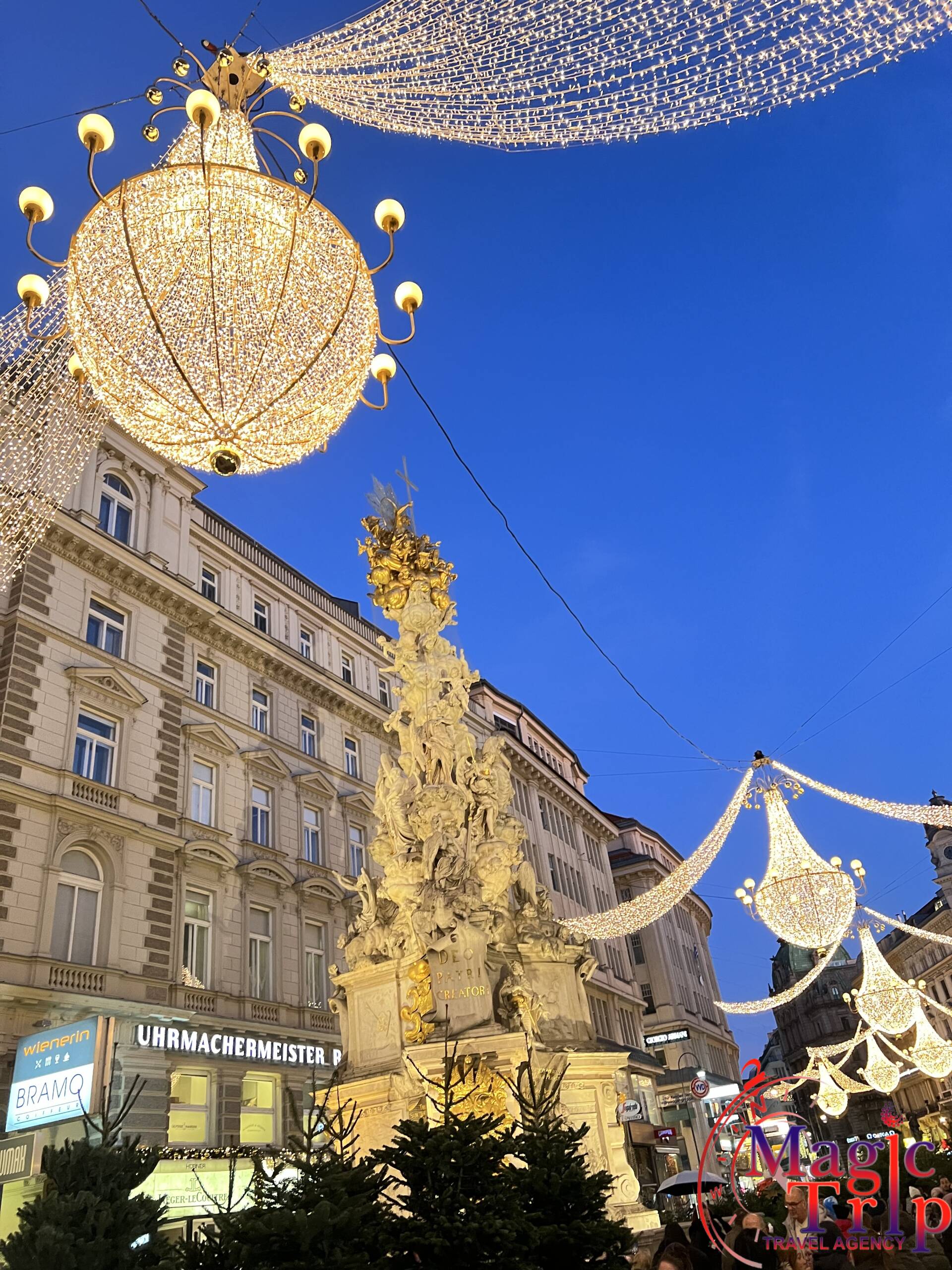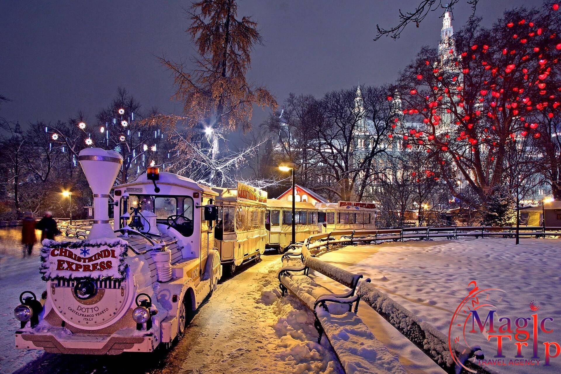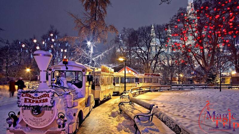Четвърти ден /17.12.2026г./ - Закуска. Отпътуване към Виена. Обиколка на Виена с екскурзовод на български език: Панорамна обиколка на Виена с екскурзовод: двореца Белведере, Ринга – Операта, двореца Хофбург, паметника на Мария Терезия, Парламента, Кметството, Университета, Нашмаркт, къщите в стил сецесион на Ото Вагнер, къщата на Хундертвасер. Пешеходна разходка из старата част на Виена – двореца Хофбург, Площада на героите, ул. „Грабен”, колоната на Чумата, катедралата „Свети Стефан”, Фигарохаус, паметника на Йохан Щраус, „Кертнерщрасе”. Свободно време. Посещение на коледния базар, , който предлага празнични традиционни деликатеси, топли напитки, ръчно изработени сувенири, специално за под елхата и много забава. Блестят светлини, мирише на джиндифил и канела и всички са усмихнати. Базарът на площад "Ратхаус" пред кметството е най-известният коледен базар във Виена. Има ледена пързалка, музикални изпълнения на живо и великолепна коледна елха. Връщане в хотела в Братислава. Нощувка.